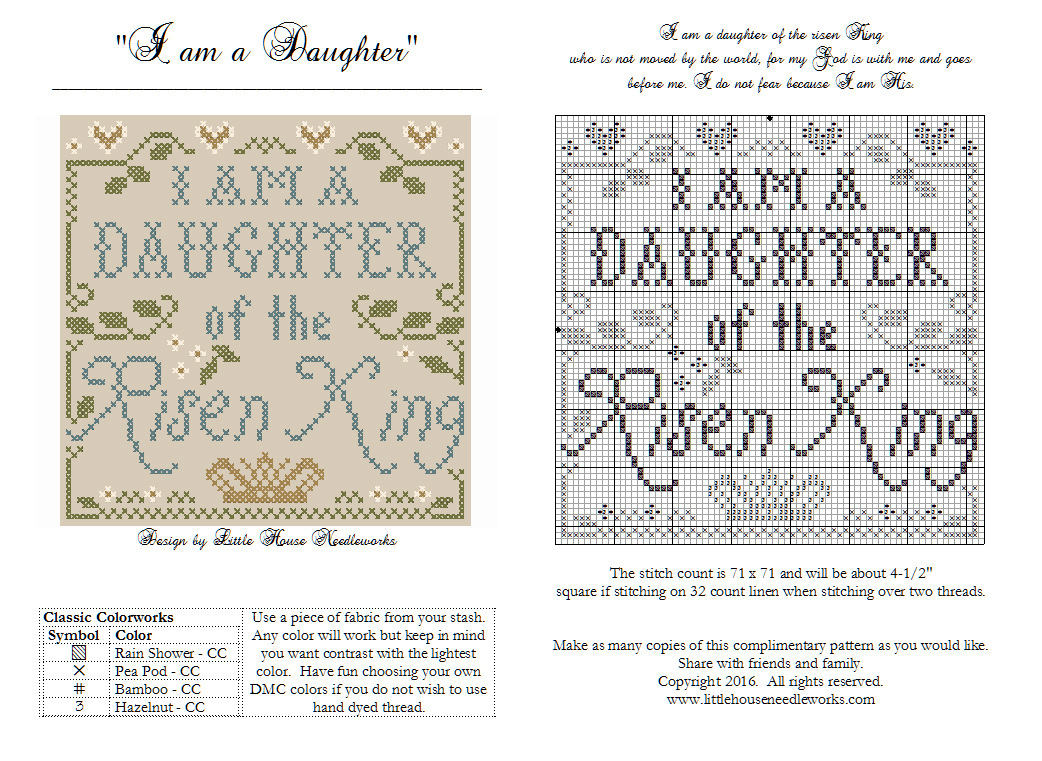 So the last little something I have to share with you is a free chart. I made it for myself then decided to share it for free with anyone who would like to stitch it. Sometimes life isn't easy and I go looking for Scripture verses or inspirational quotes. This one pops up all of the time over the internet and reminds me of who I am and provides a source of strength when life seems to be teetering on the edge.